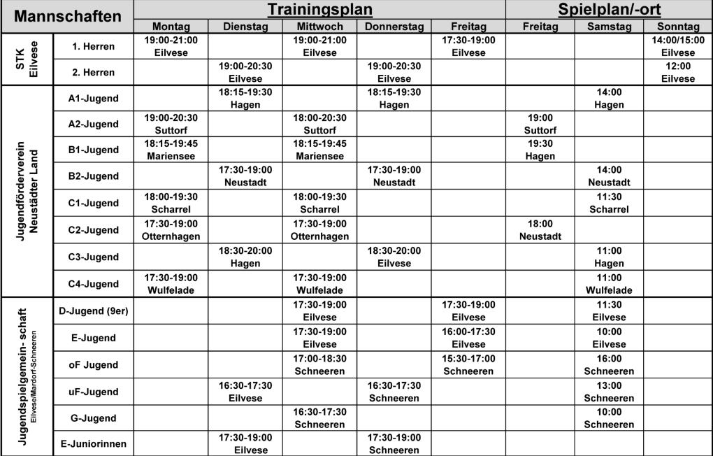 Trainingszeiten und Spielorte
